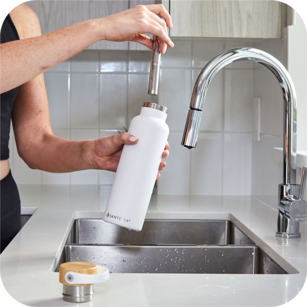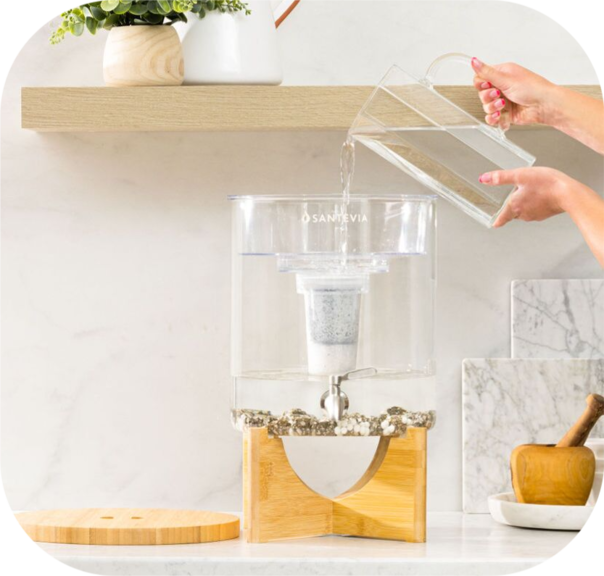 With Santevia, limit your exposure by filtering 99% of chlorine from your bath and drinking water.